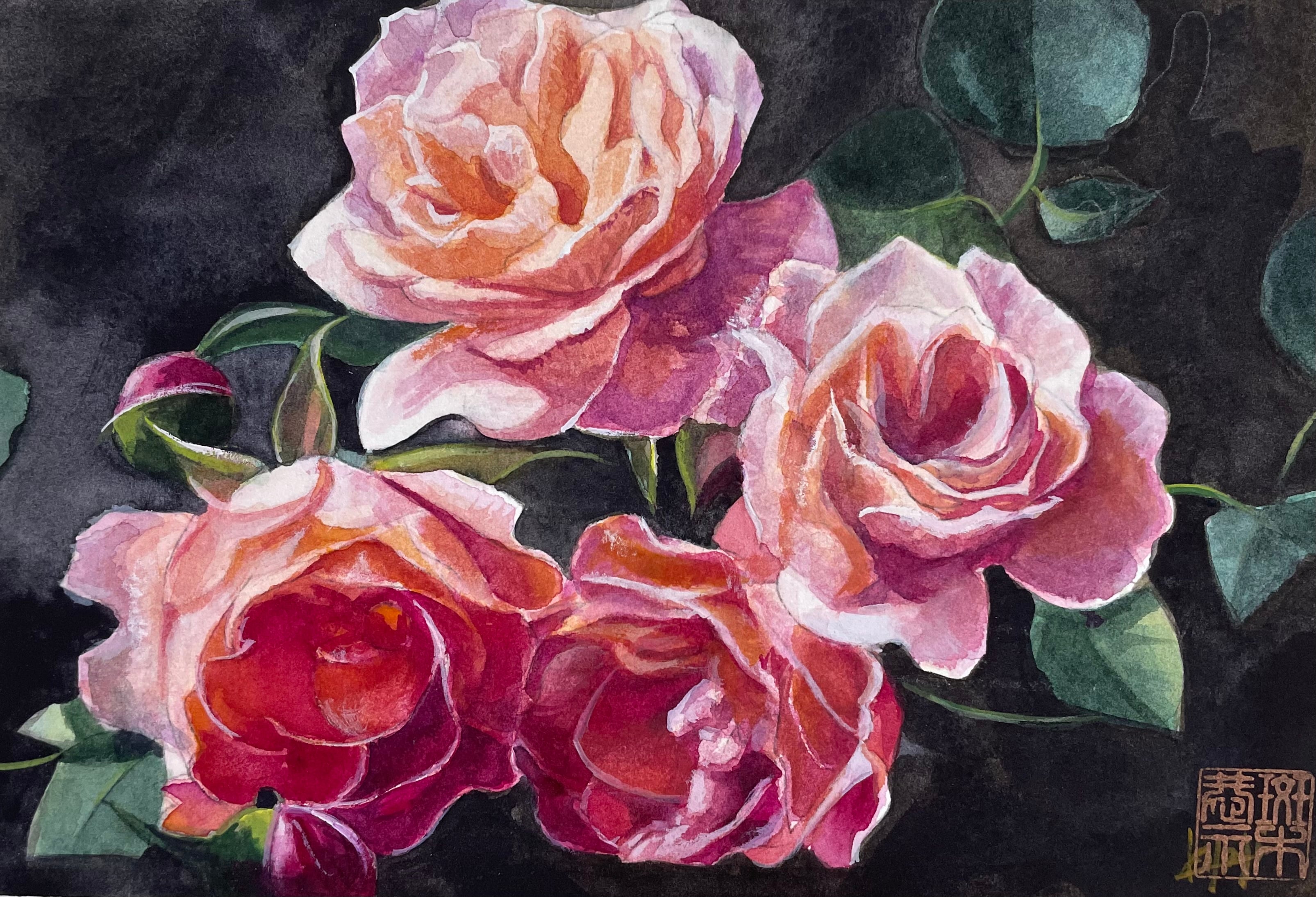 マダラキ貴重な静物画 ピンクの薔薇を描いてみた。柔らかな花のイメージが伝わる一枚。