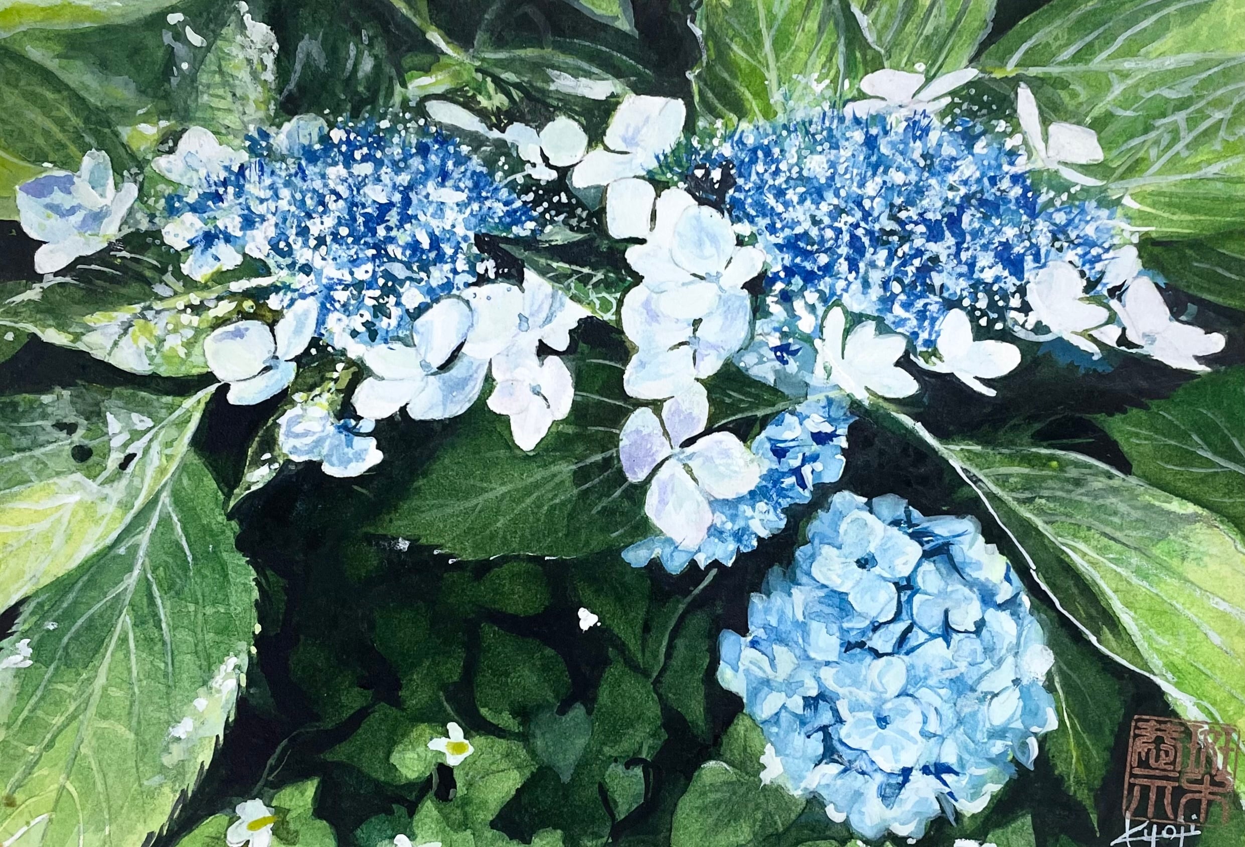 道端の紫陽花 水彩原画A4額装 | マダラキさんの水彩画
