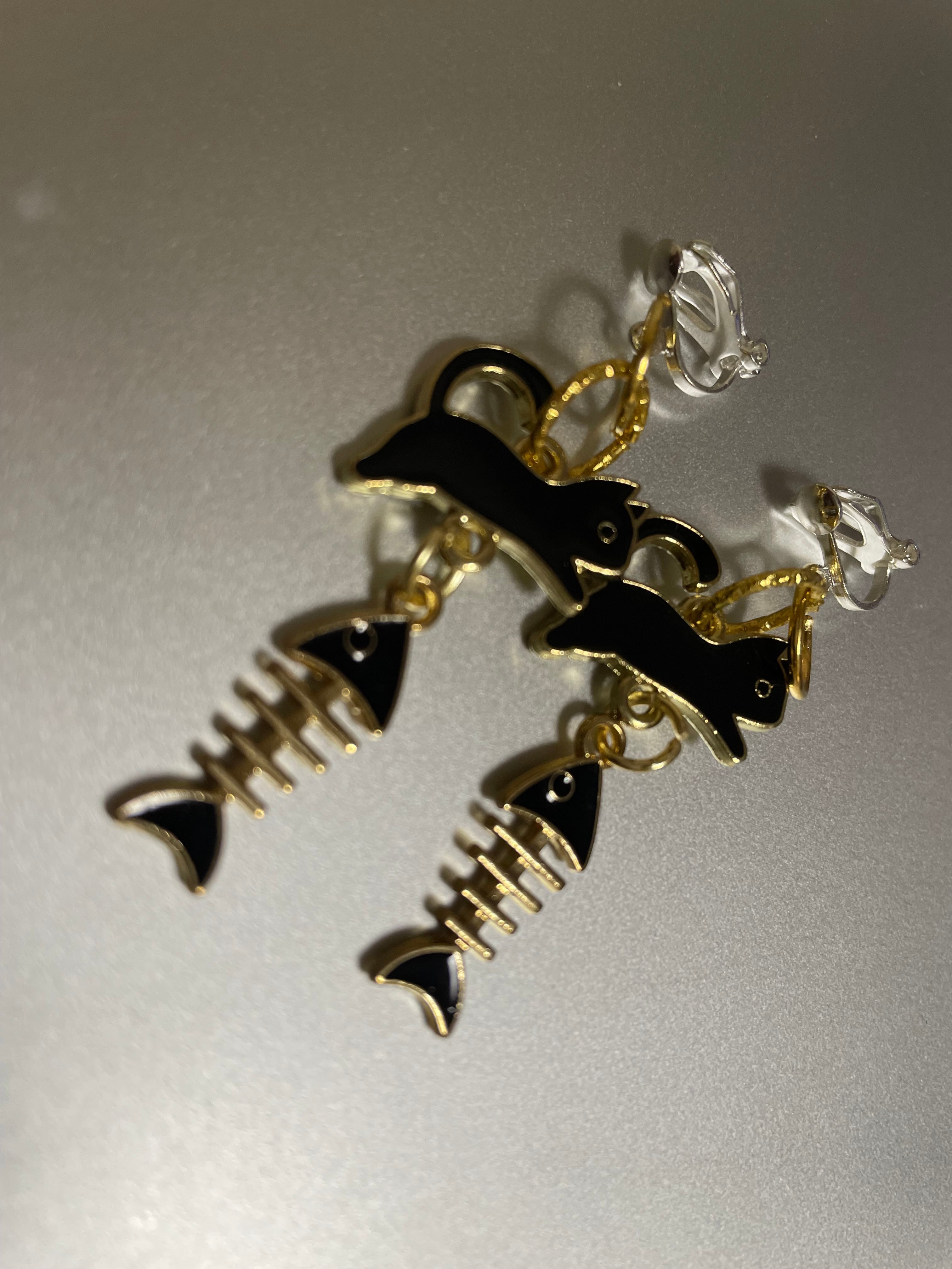 黒猫と魚 ピアス&イヤリング