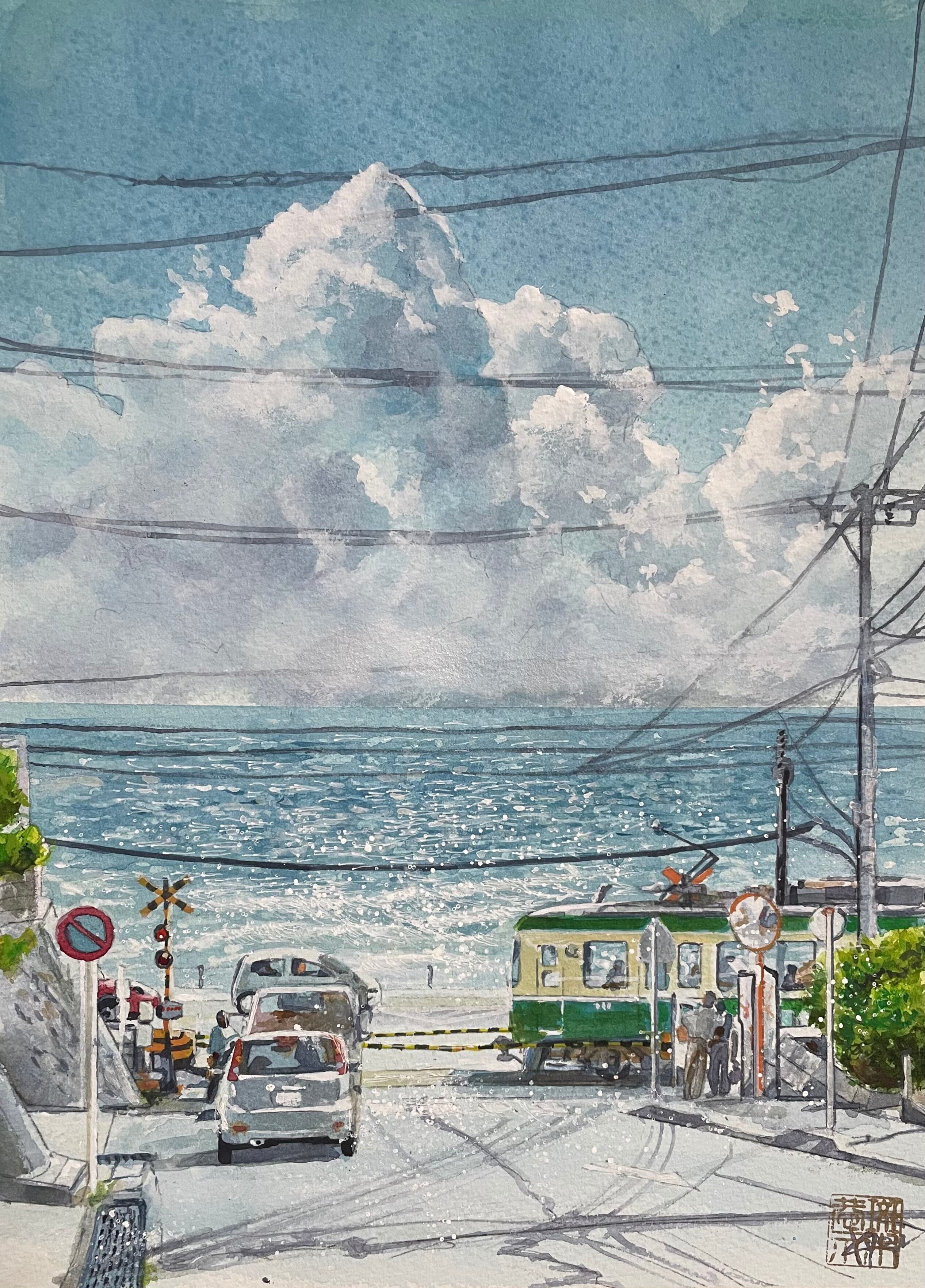 鎌倉高校前踏切 夏 F4水彩原画