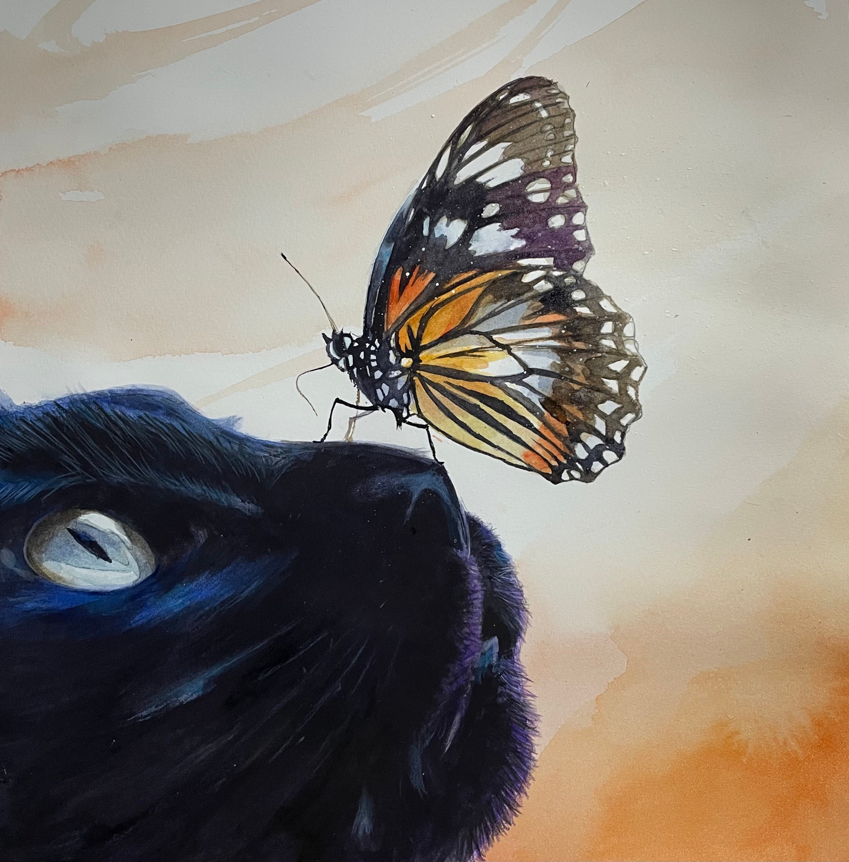 A-5 蝶と黒猫 限定ジクレー版画 20×20cm