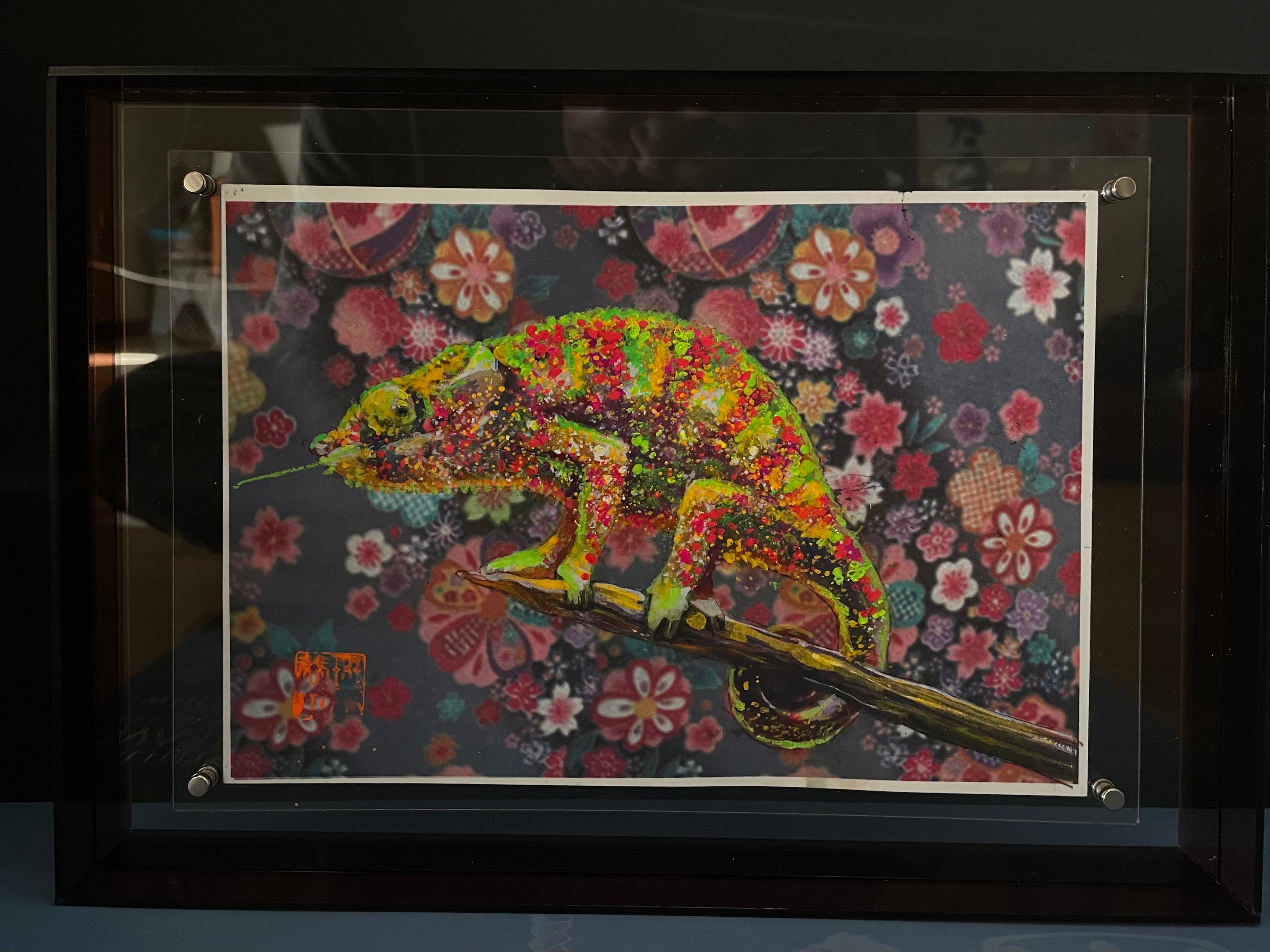 多彩な色彩と洗練されたデザインが特徴の「元号カメレオン 大正」。この作品は、歴史的な元号をテーマにした魅力的なアートで、日本の文化と時代を見事に表現しています。エレガントなアクリル額に収められたこの作品は、どんな空間にも映える美しさを持ち、見る人の目を引き付けます。温かみのある色合いと印象的なミクストメディアの技法が融合し、心に残る特別なアートとして、あなたの空間を彩ります。訪れる人々に日本の文化の深みを伝える素敵なアイテムとなることでしょう。あなたのインテリアに、ぜひこのアートをお楽しみください!
