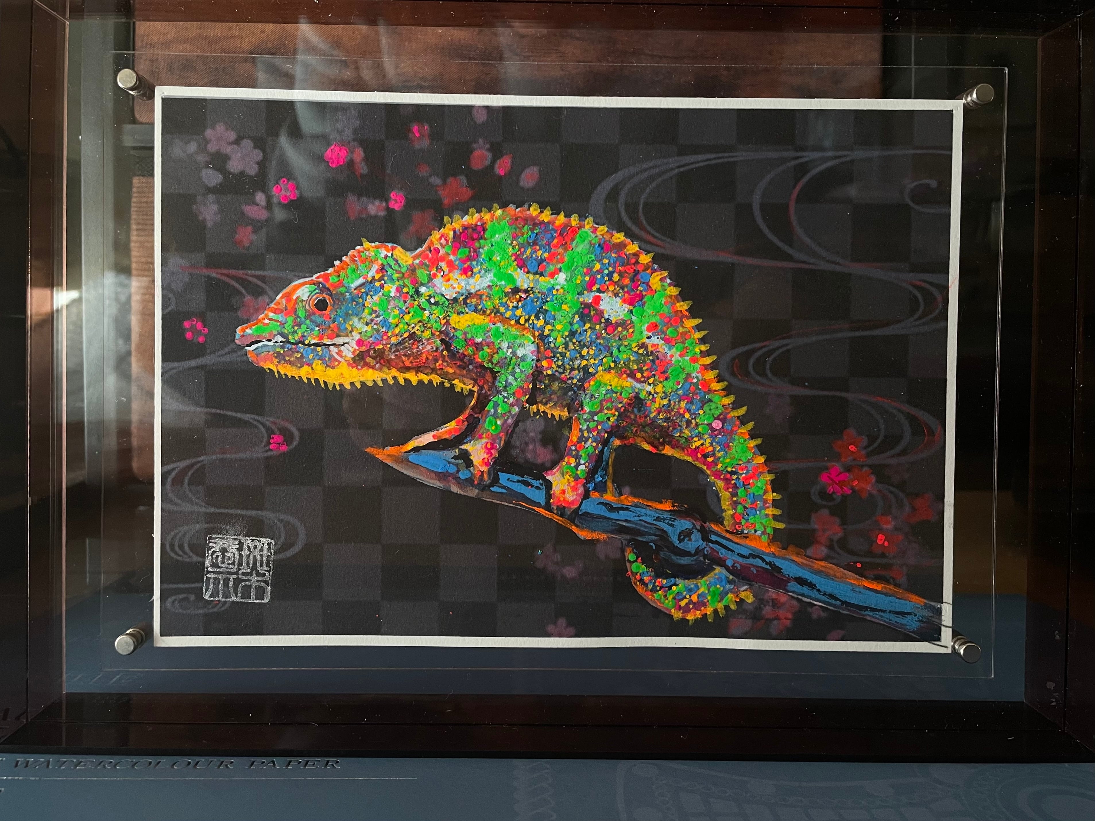 # 元号カメレオン令和 A4アクリル額 SMサイズ ミクストメディア