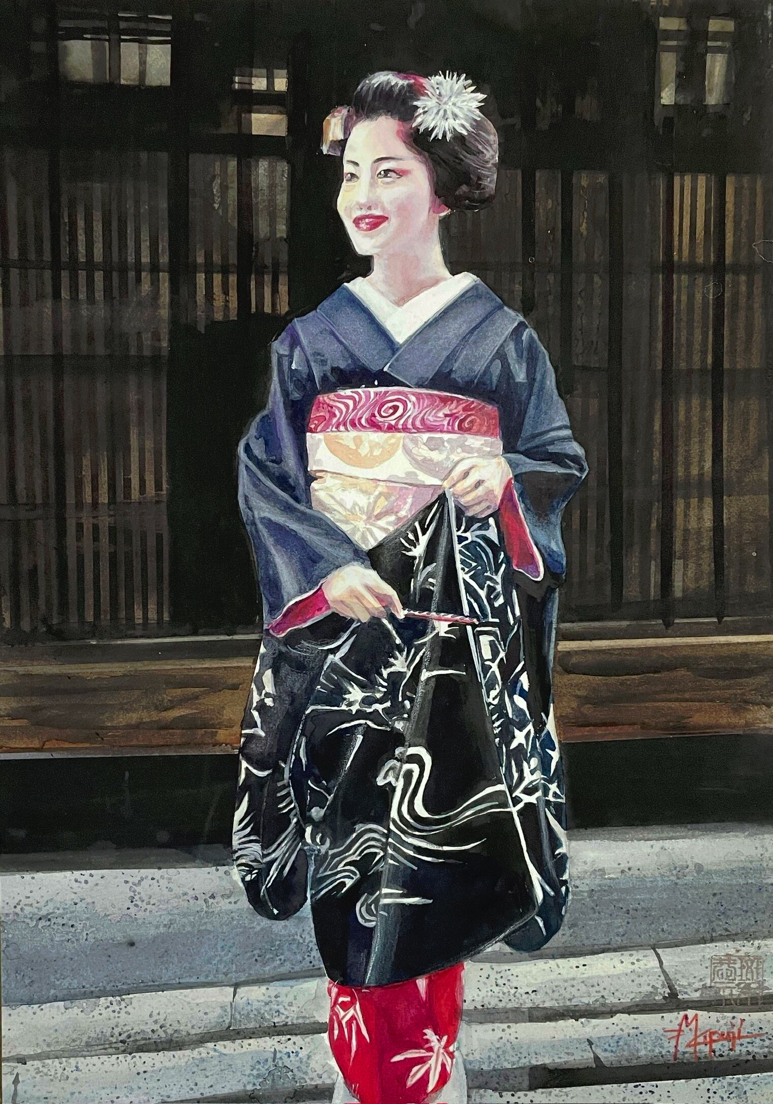 GION geiko ジグレー版画 限定3A4 | マダラキさんの水彩画