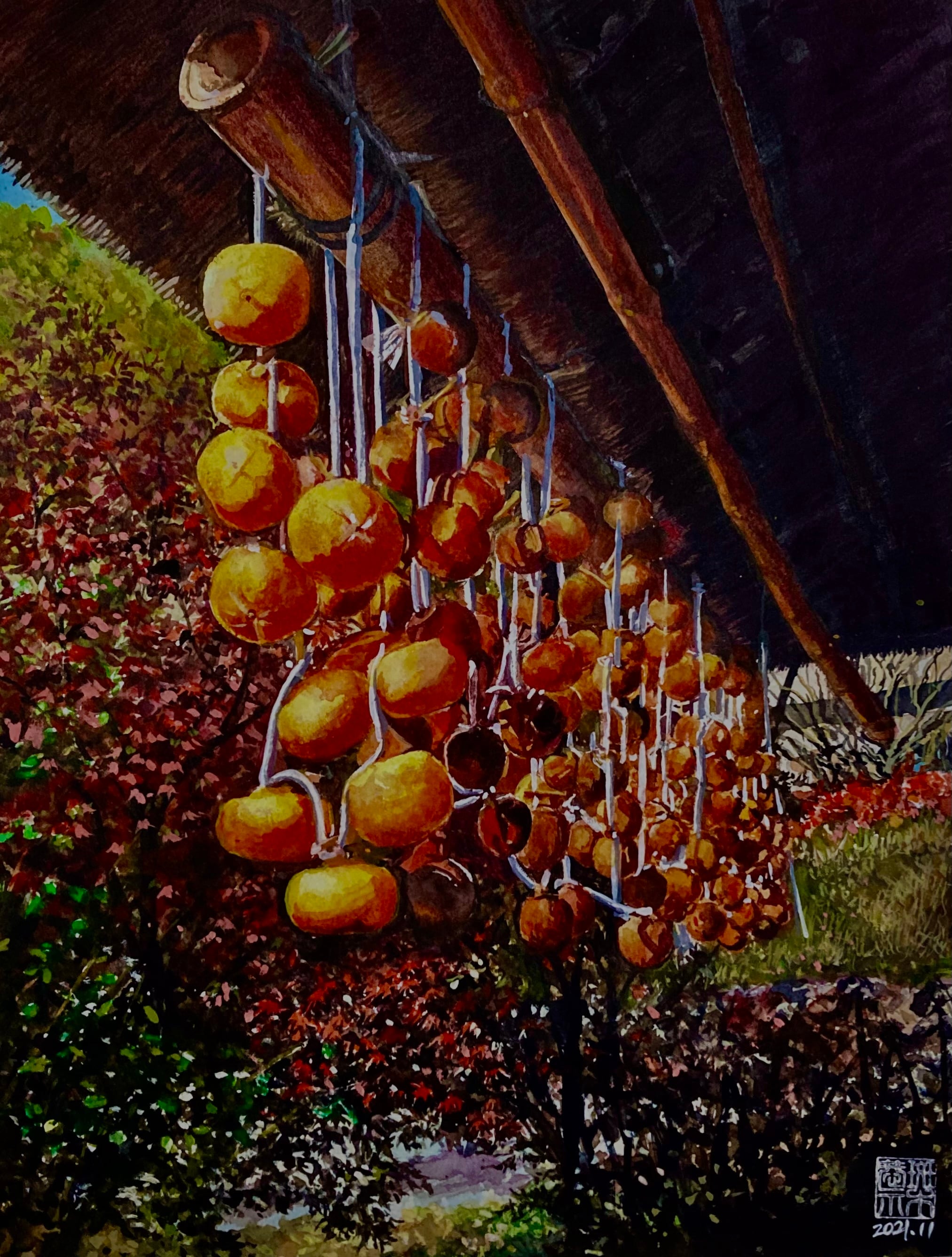 風情漂う日本の風物詩、あんば柿F6《水彩原画》がついに登場しました。北鎌倉ギャラリー公募にて圧倒的な支持を受け、人気第1位となった作品です。