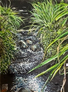 新緑の名月川 F4水彩原画 額装済